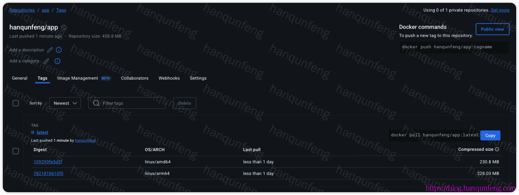 如果不需要单平台镜像,可以在dockerhub上删除即可。